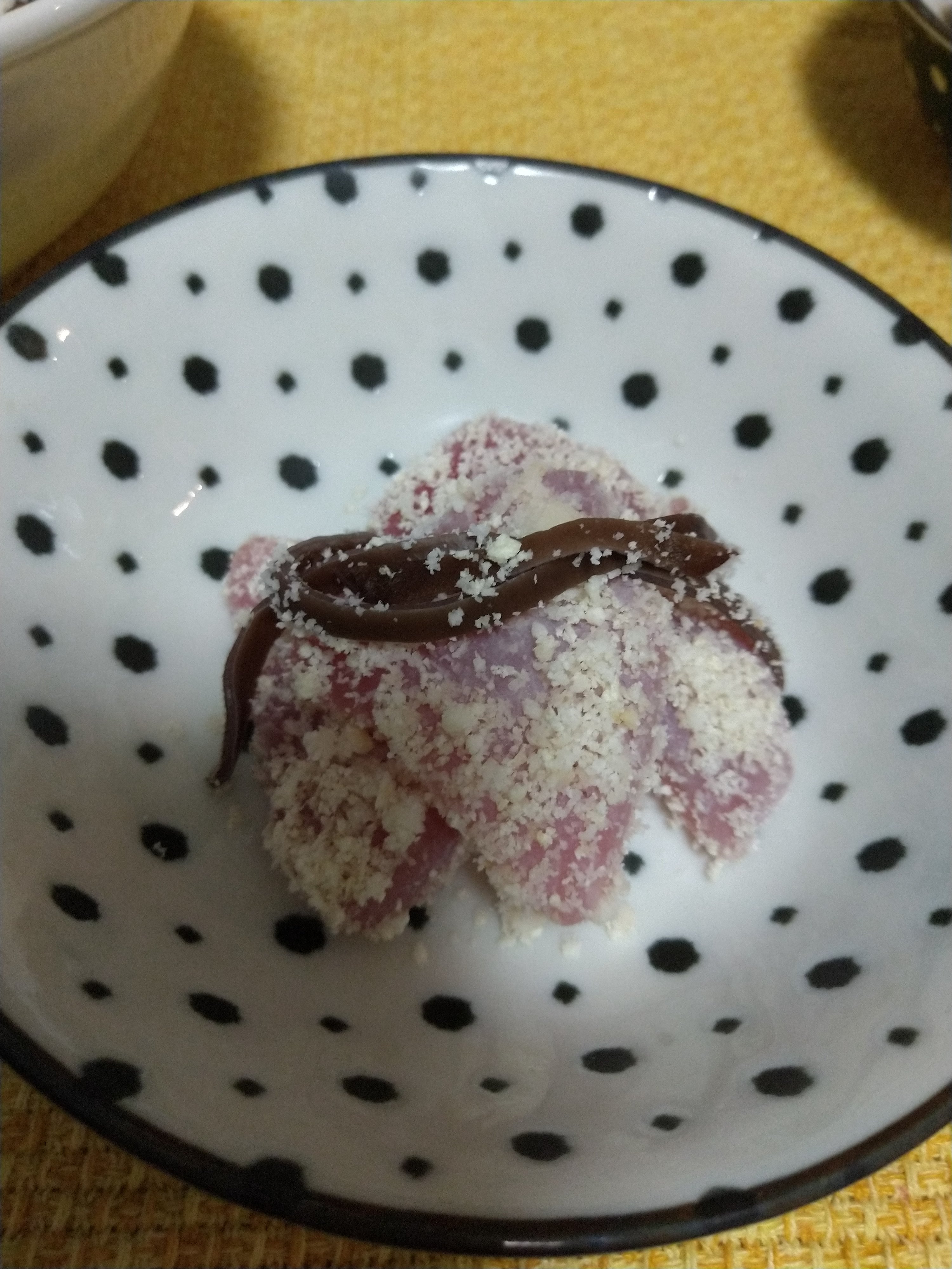 平安時代のおやつであり、源氏物語にも出ている椿餅(もどき)を作ってみました。
