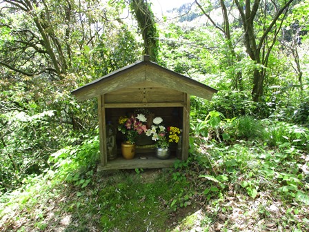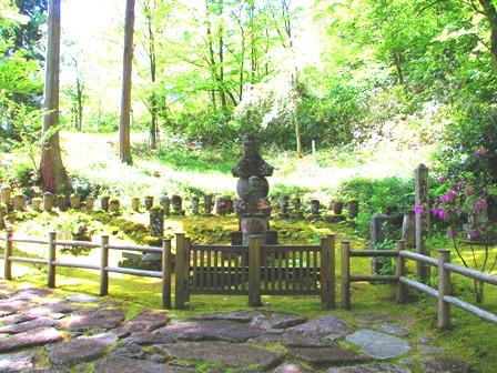 墓石?の後ろにある石の方がお墓なのかも。
