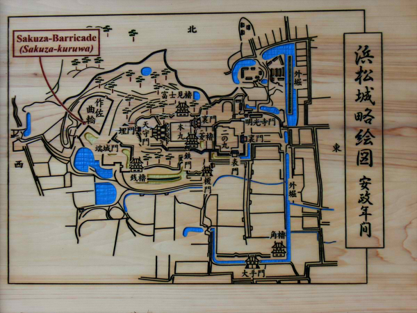 作左曲輪前の、昔の浜松城の地図。木でできててなんかかっこいい。