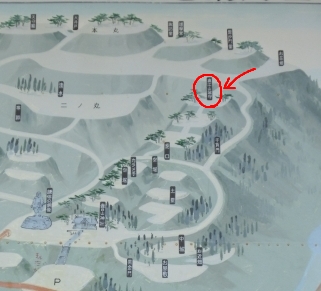 道すがら、空堀、虎口、千貫門跡等があります。