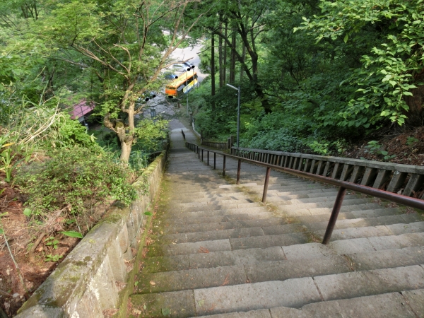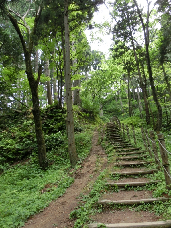 お土産も買ってたっぷり楽しんだので、春日山城を後にします。結構階段急。
